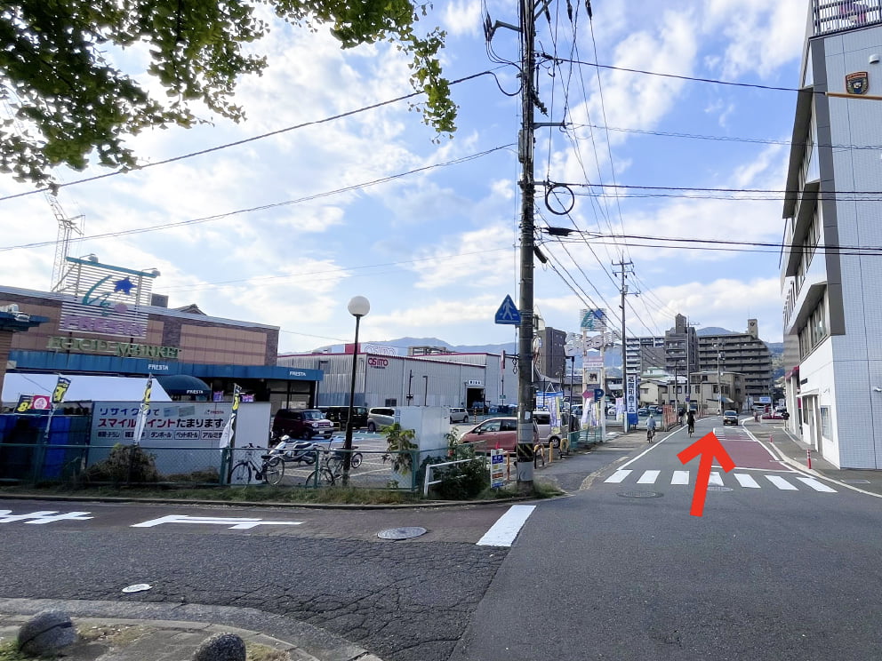 フレスタ祇園店が左側に見えますので、こちらを直進します。