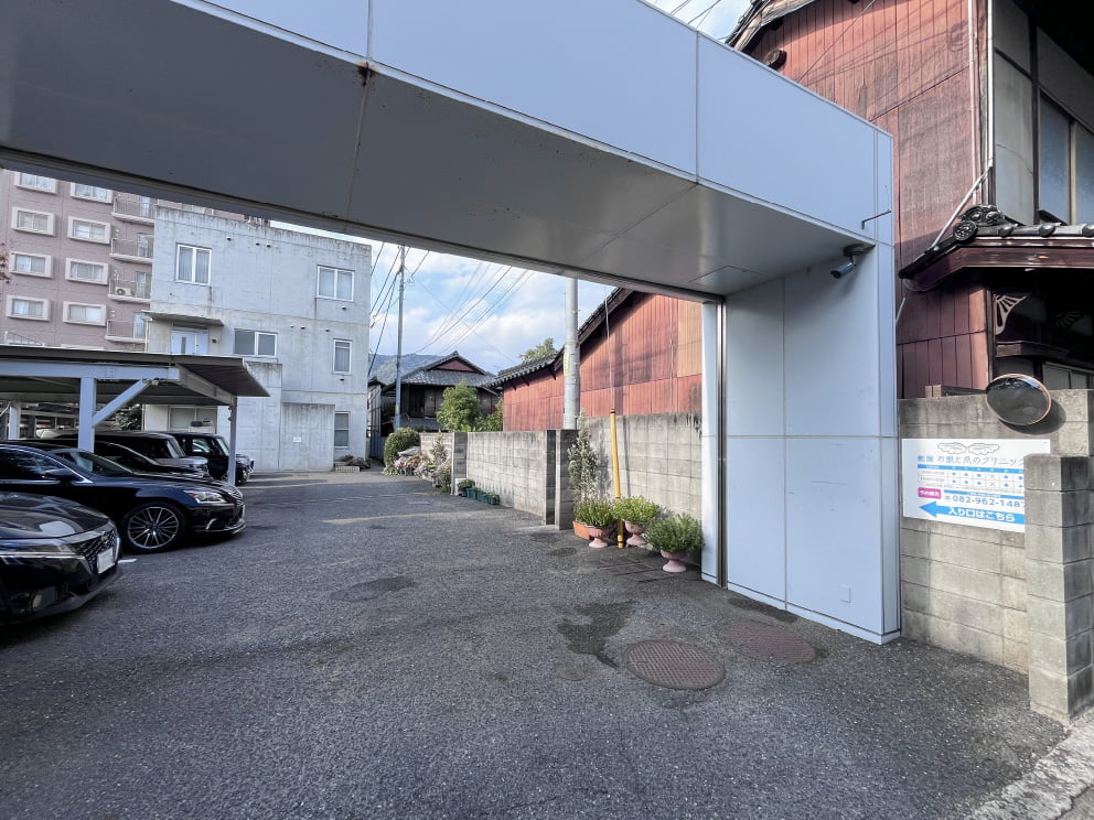 当院に到着です。駐車場を完備しており、バイクや自転車も停められます。